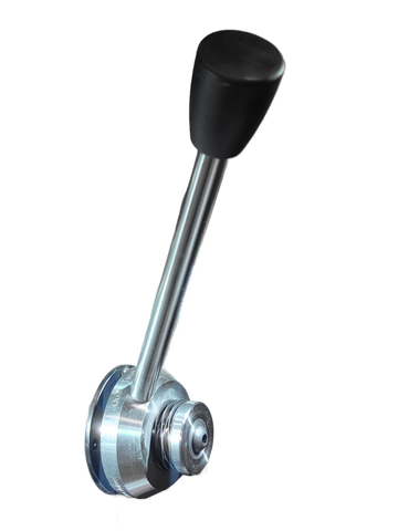 Simply twist the handle, rotate it to a convenient position and once released it securely snaps back and all three pins reengage the hub allowing you to move the quill up or down.